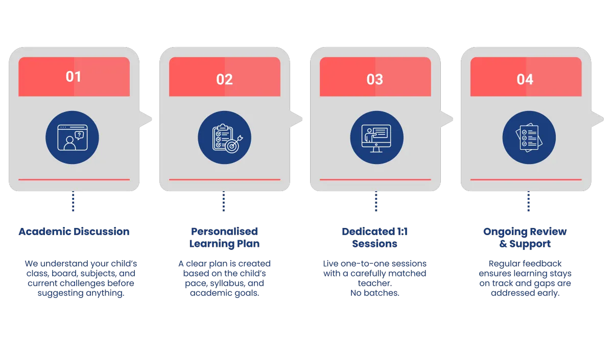 A clear plan is created based on the child’s pace, syllabus, and academic goals.